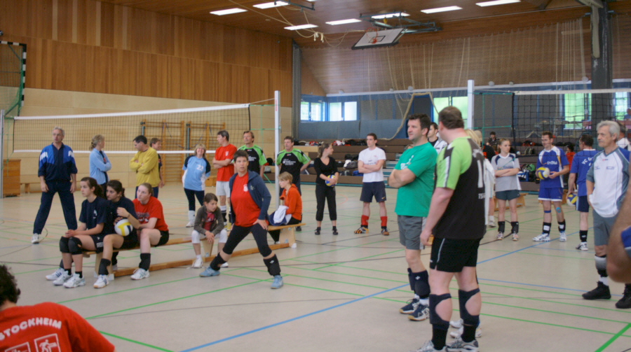 | Die Vorbereitung des Turniers war schon mal sehr spannend. Es wurde uns mitgeteilt, dass die Tribünen defekt und nicht ausfahrbar seien. Das wirft unsere bewährte Organisation ziemlich um. Müssen wir das Turnier gar ausfallen lassen? Jedenfalls planen wir den Spielbetrieb nur mit zwei Feldern, damit notfalls ein drittes als "Lagerfläche" für die Zuschauer bleibt. Dann dürfen wir auf eigenes Risiko immerhin eine Tribüne ausfahren, gewinnen so doch den Zugang nach oben und alles kann im bewährten Ablauf stattfinden. | |||||||||||